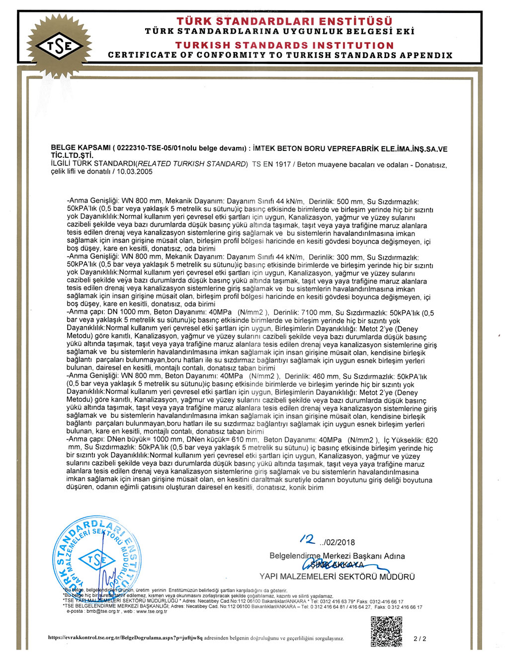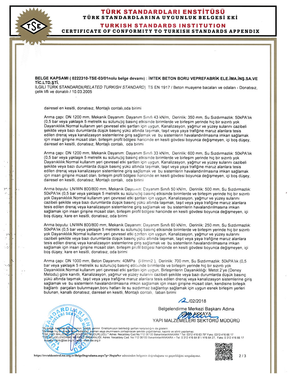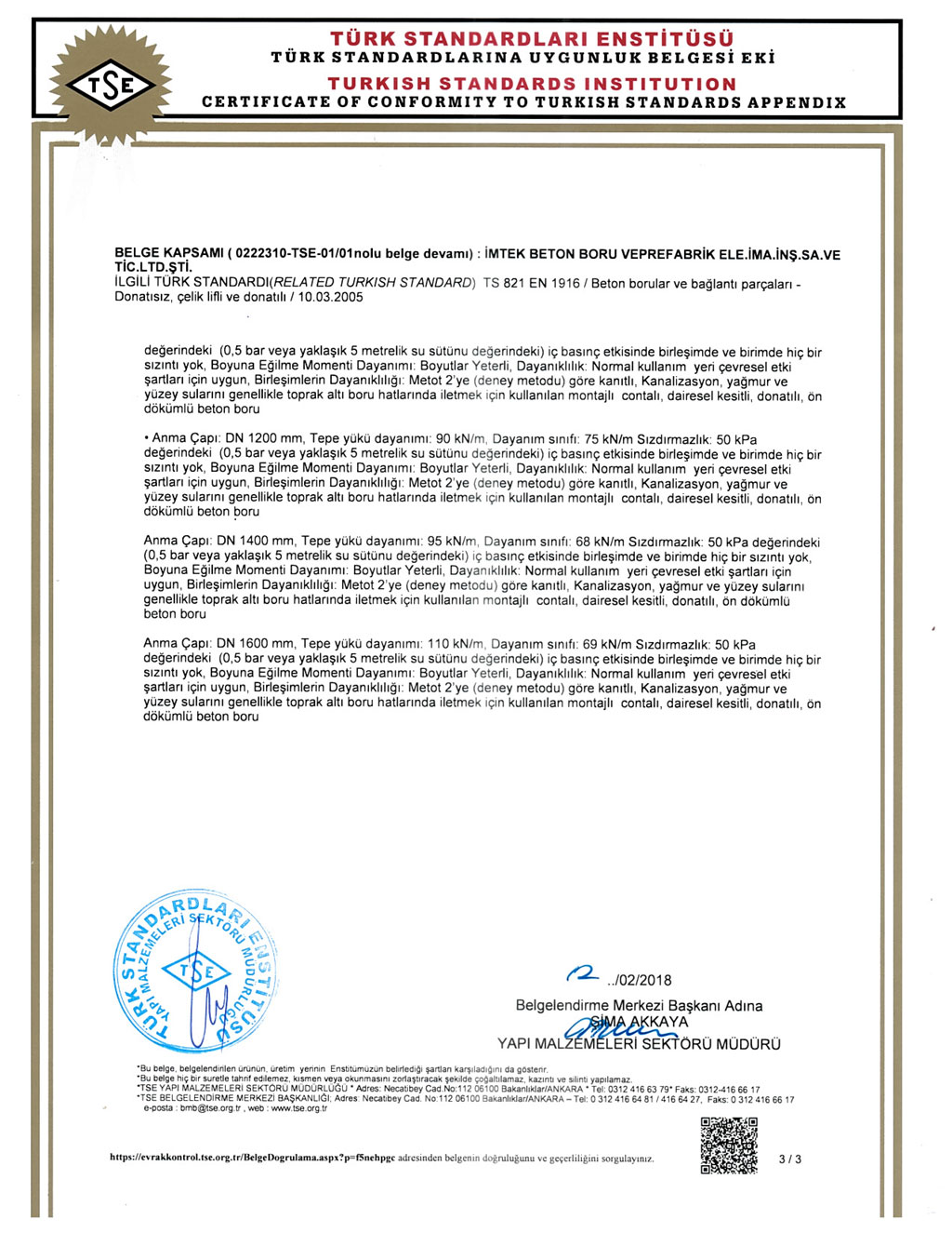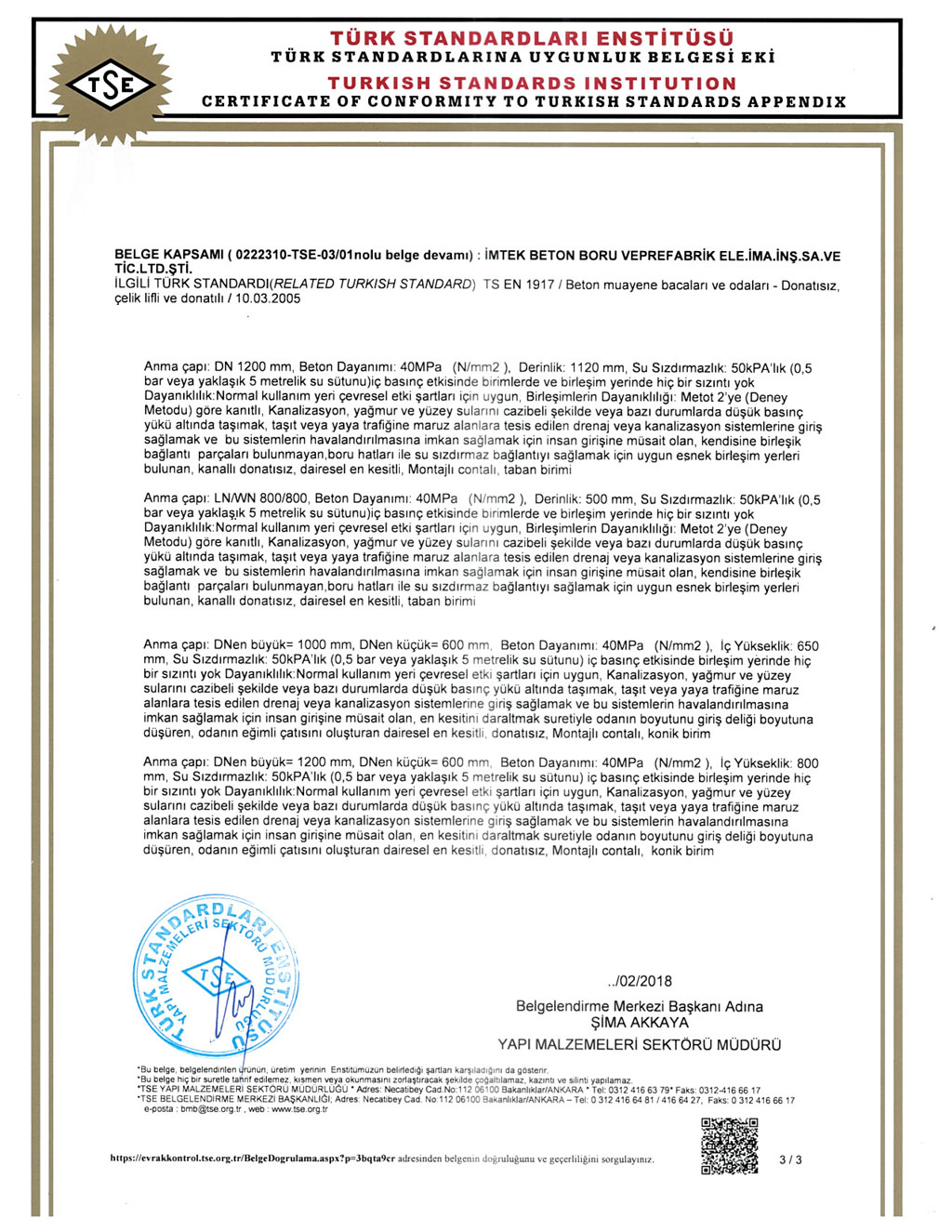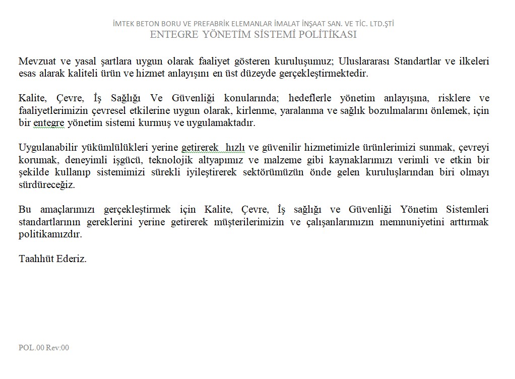 Fabrikalarımızda TS EN1916 - TS EN 1917 kalite standartlarına uygun ve İller Bankası A.Ş. kriterleri doğrultusunda üretim yapılmaktadır. SERTİFİKALARBANDIRMA AKHİSAR KARAPINAR