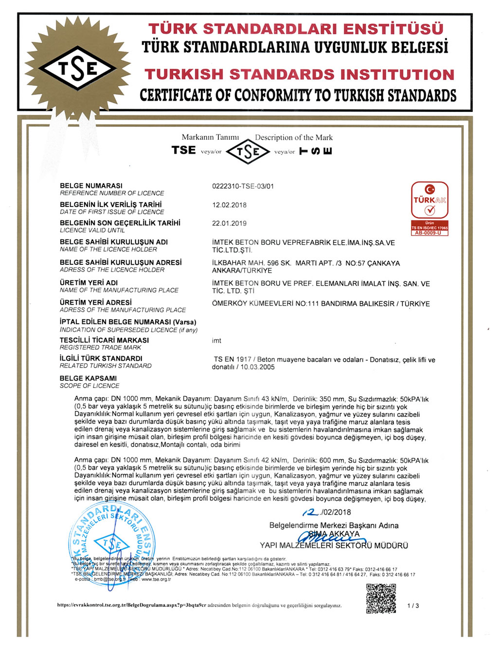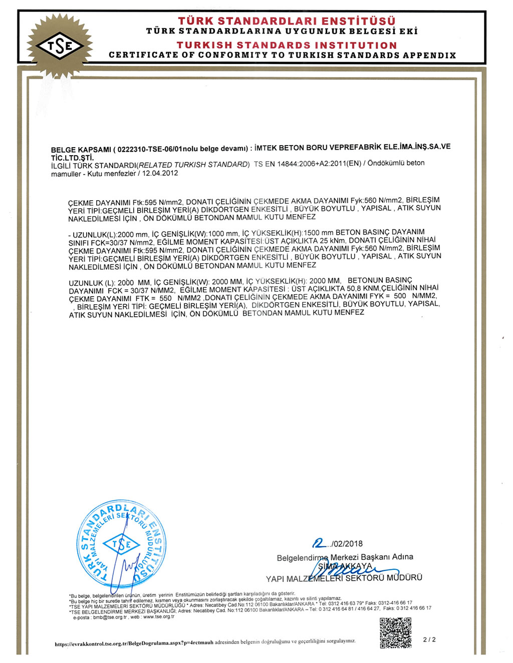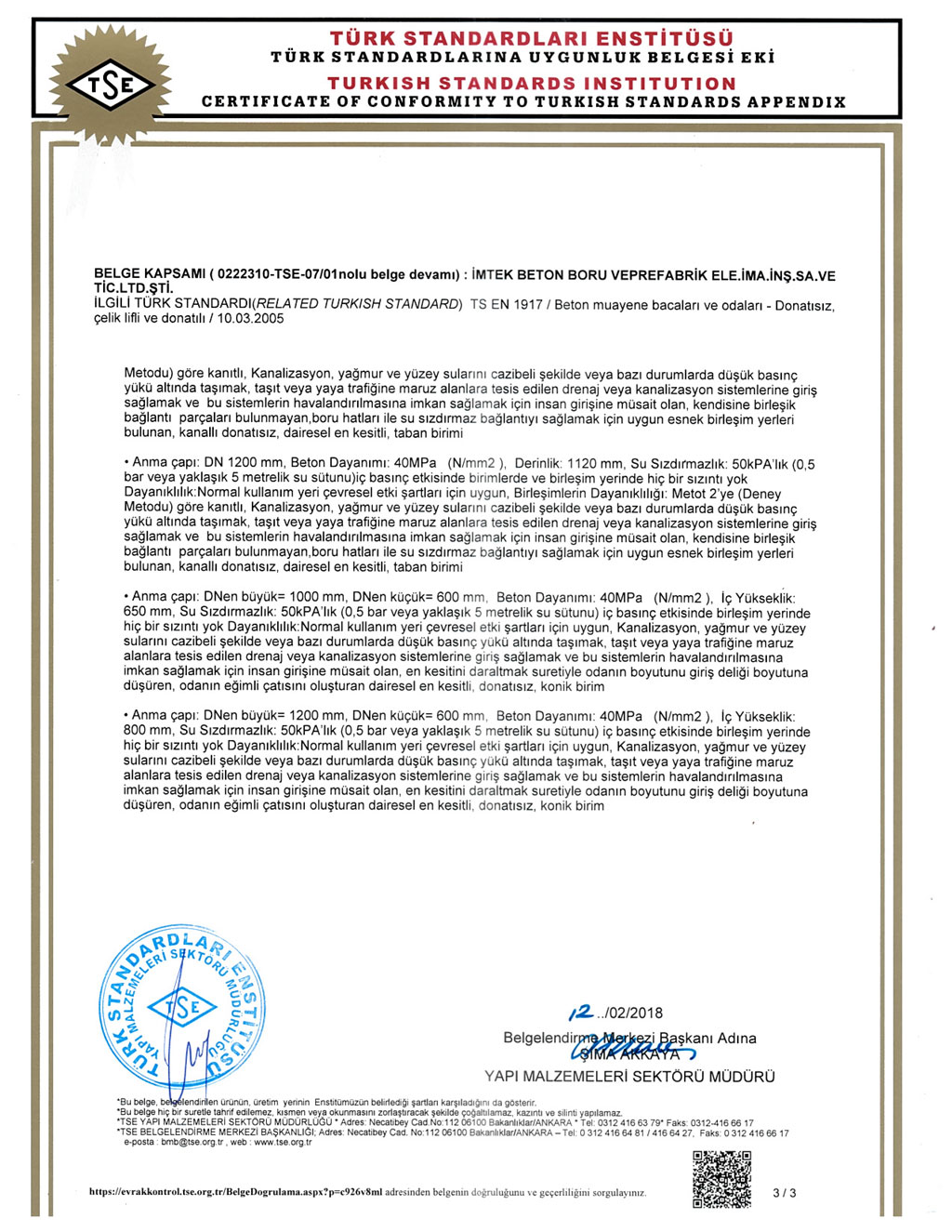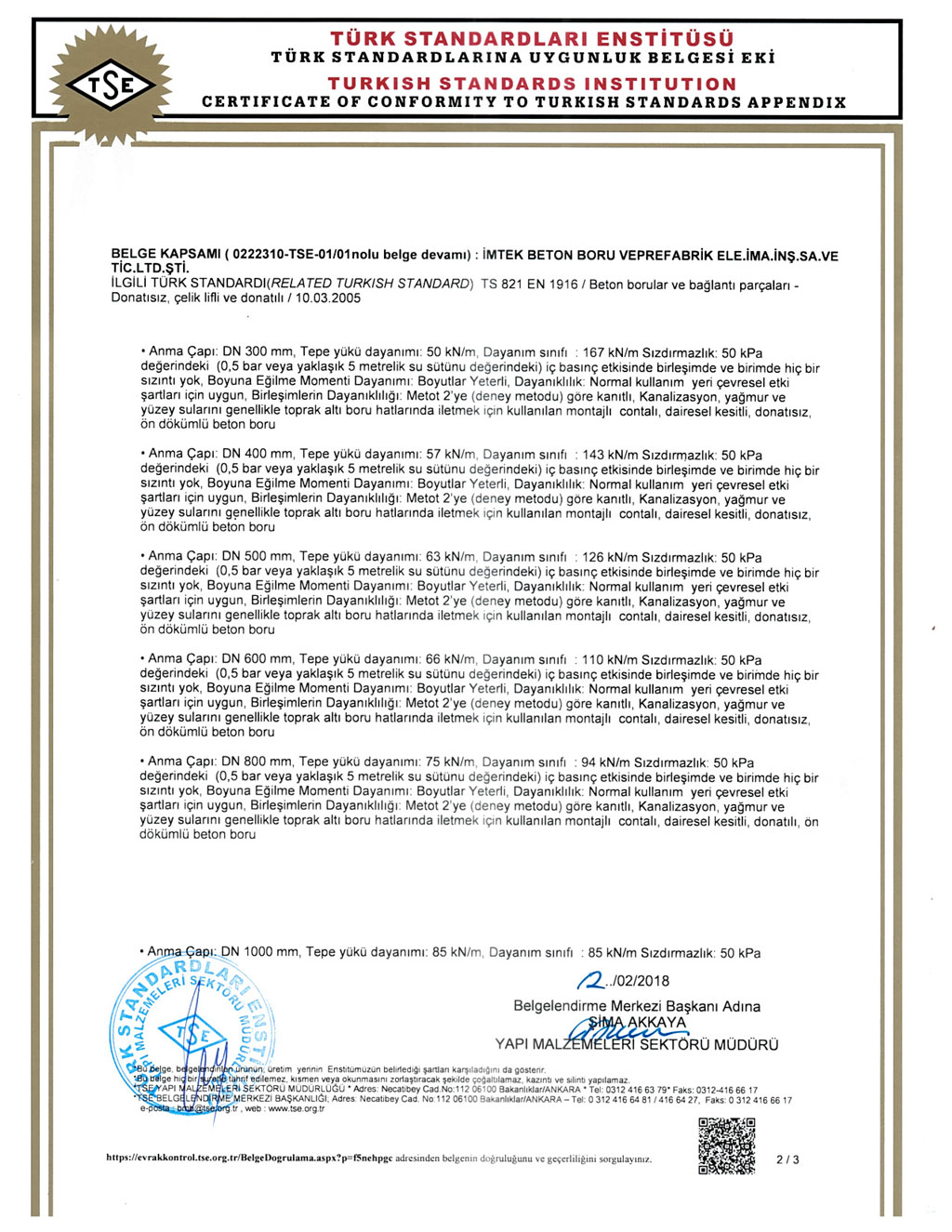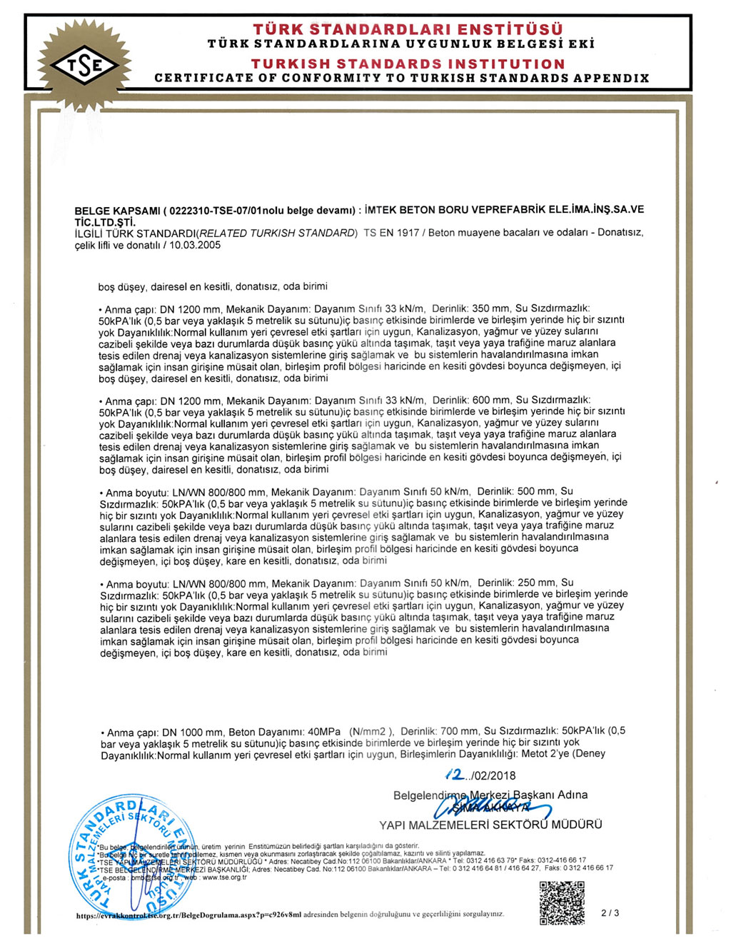 Fabrikalarımızda TS EN1916 - TS EN 1917 kalite standartlarına uygun ve İller Bankası A.Ş. kriterleri doğrultusunda üretim yapılmaktadır. SERTİFİKALARBANDIRMA AKHİSAR KARAPINAR