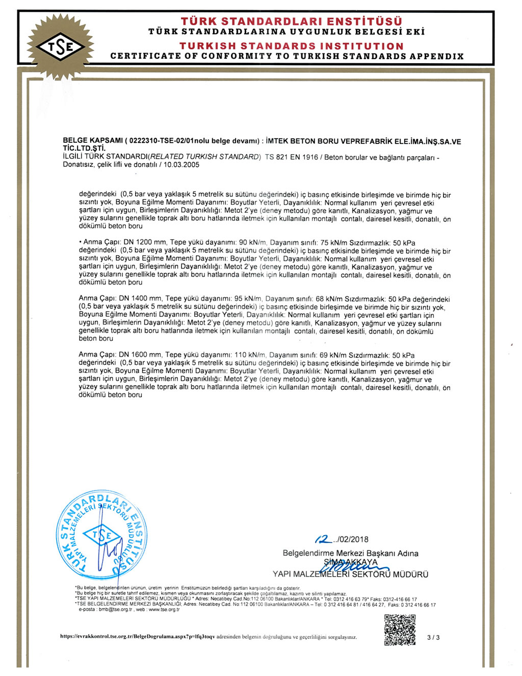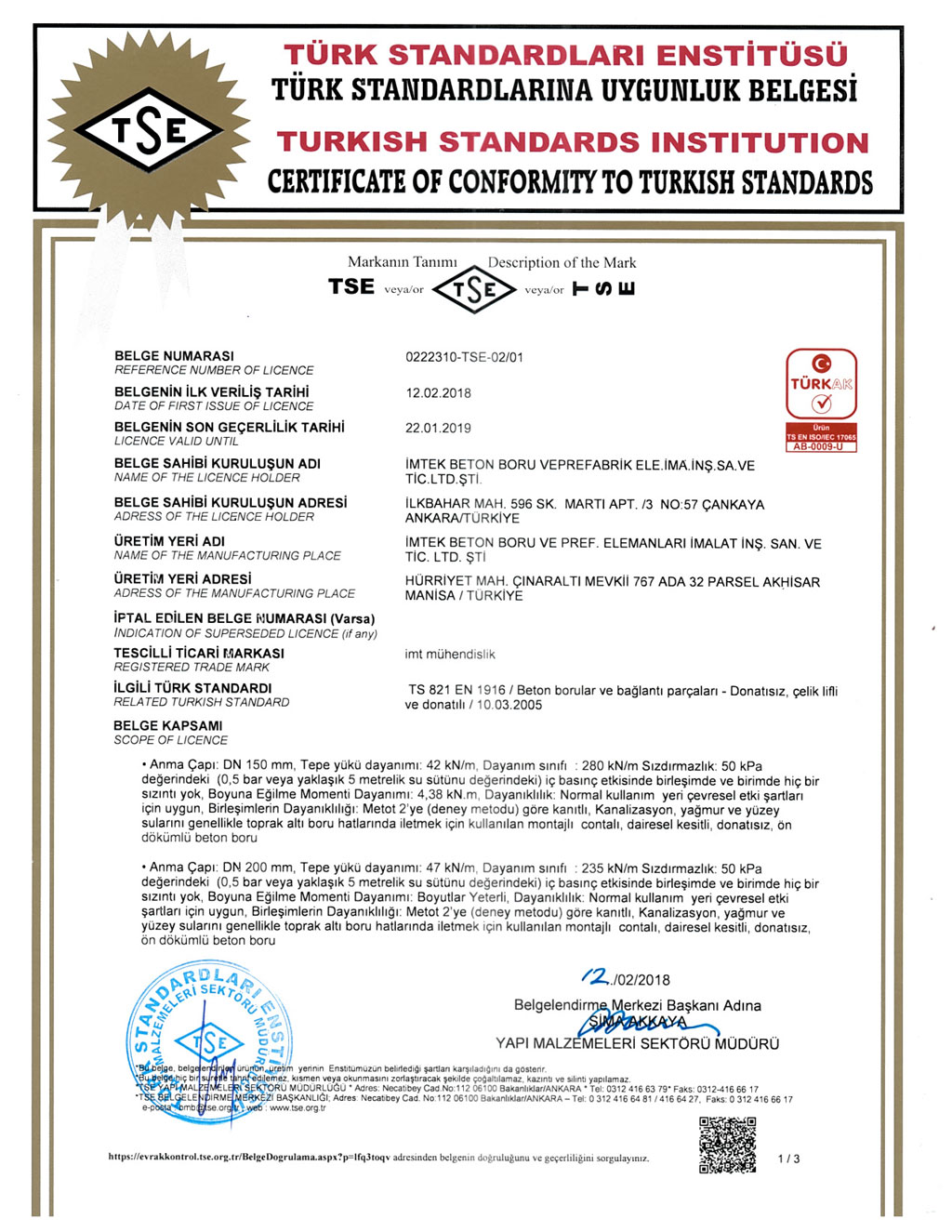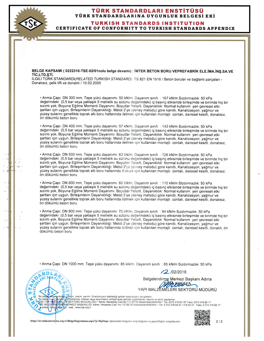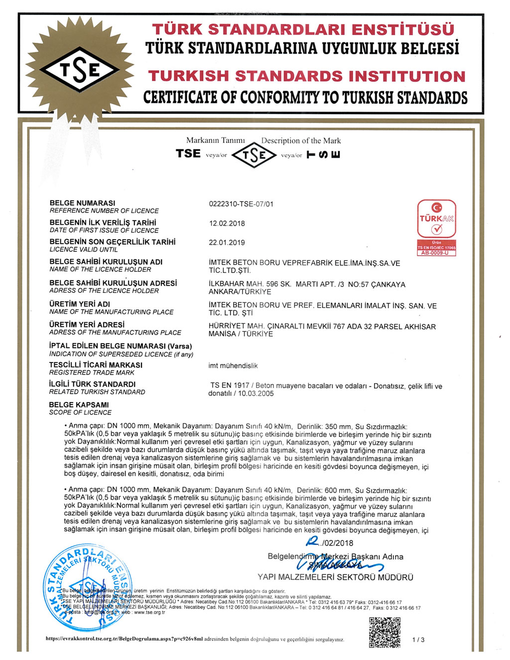 Fabrikalarımızda TS EN1916 - TS EN 1917 kalite standartlarına uygun ve İller Bankası A.Ş. kriterleri doğrultusunda üretim yapılmaktadır. SERTİFİKALARBANDIRMA AKHİSAR KARAPINAR