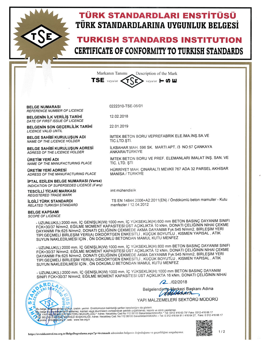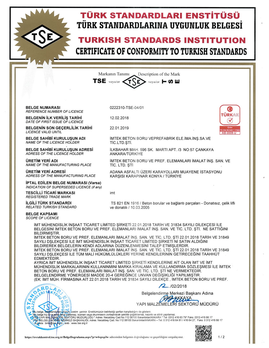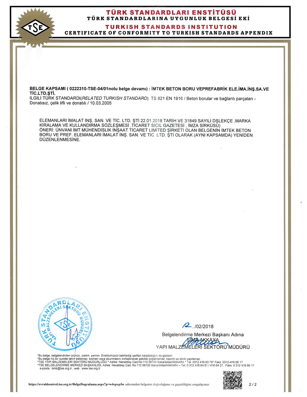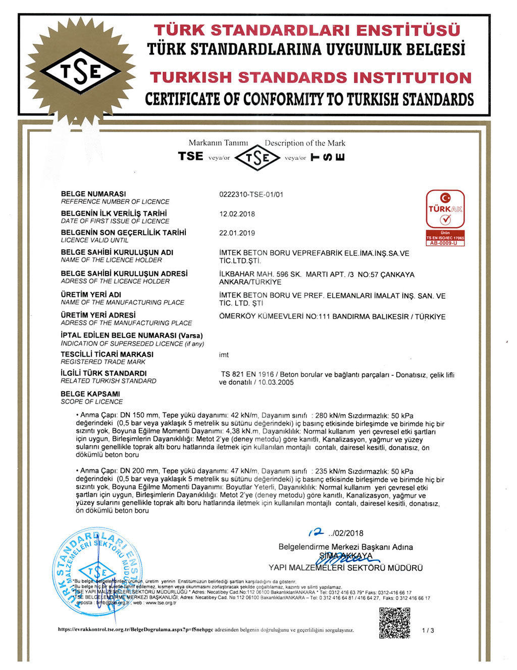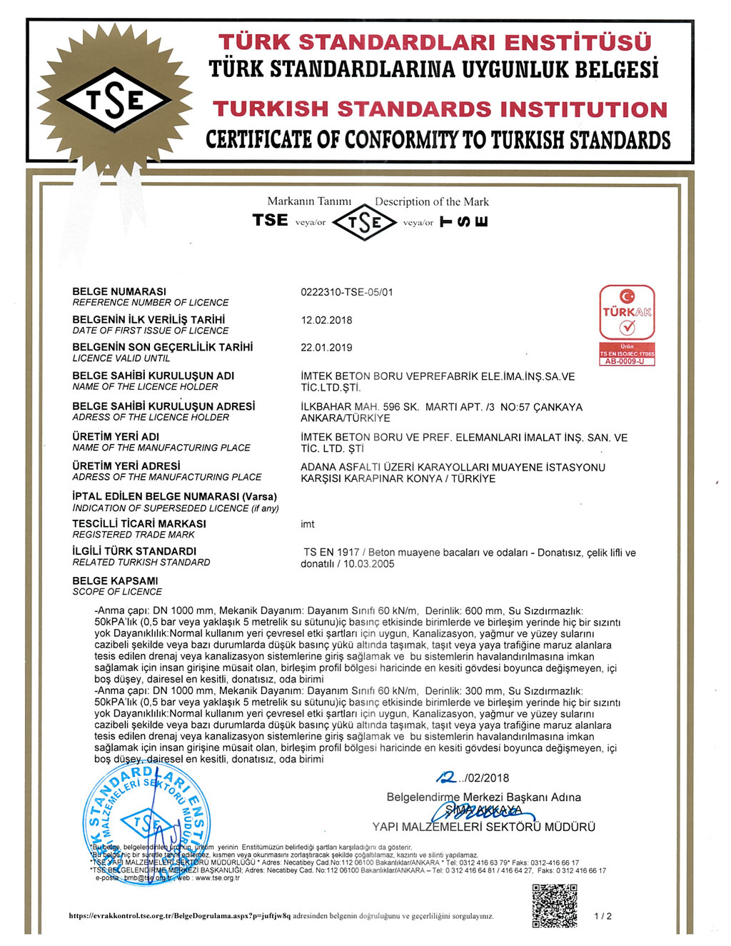Fabrikalarımızda TS EN1916 - TS EN 1917 kalite standartlarına uygun ve İller Bankası A.Ş. kriterleri doğrultusunda üretim yapılmaktadır. SERTİFİKALARBANDIRMA AKHİSAR KARAPINAR